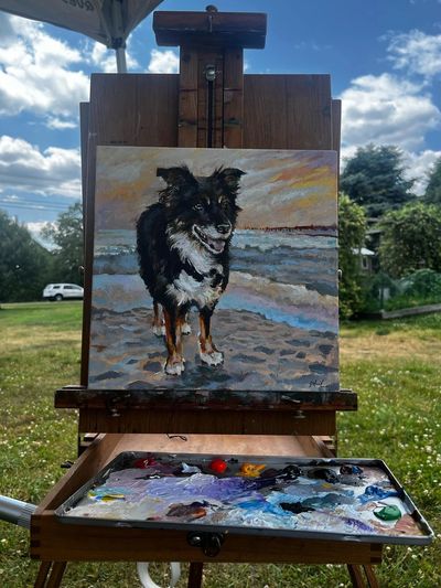 During the painting process, I allow the pet to speak to me through pictures telling me their story. As the client, I keep you posted from start to finish to you can see them come to life. Local delivery or pick up. We also ship to any location in the country.